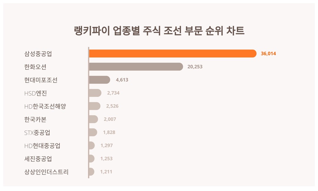 [출처: 랭키파이 업종별 주식 조선 부문 트렌드 테이블]