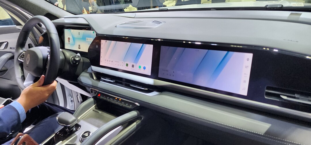 ▲ 르노코리아 '그랑 콜레오스' 실내에는 3개의 와이드 디스플레이가 펼쳐져 있다. 사진=강병현 기자 |