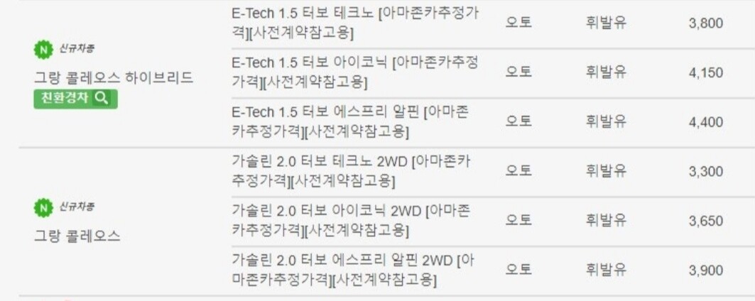 ▲ 르노코리아 '그랑 콜레오스'의 추정 가격표. 사진=독자제보 |