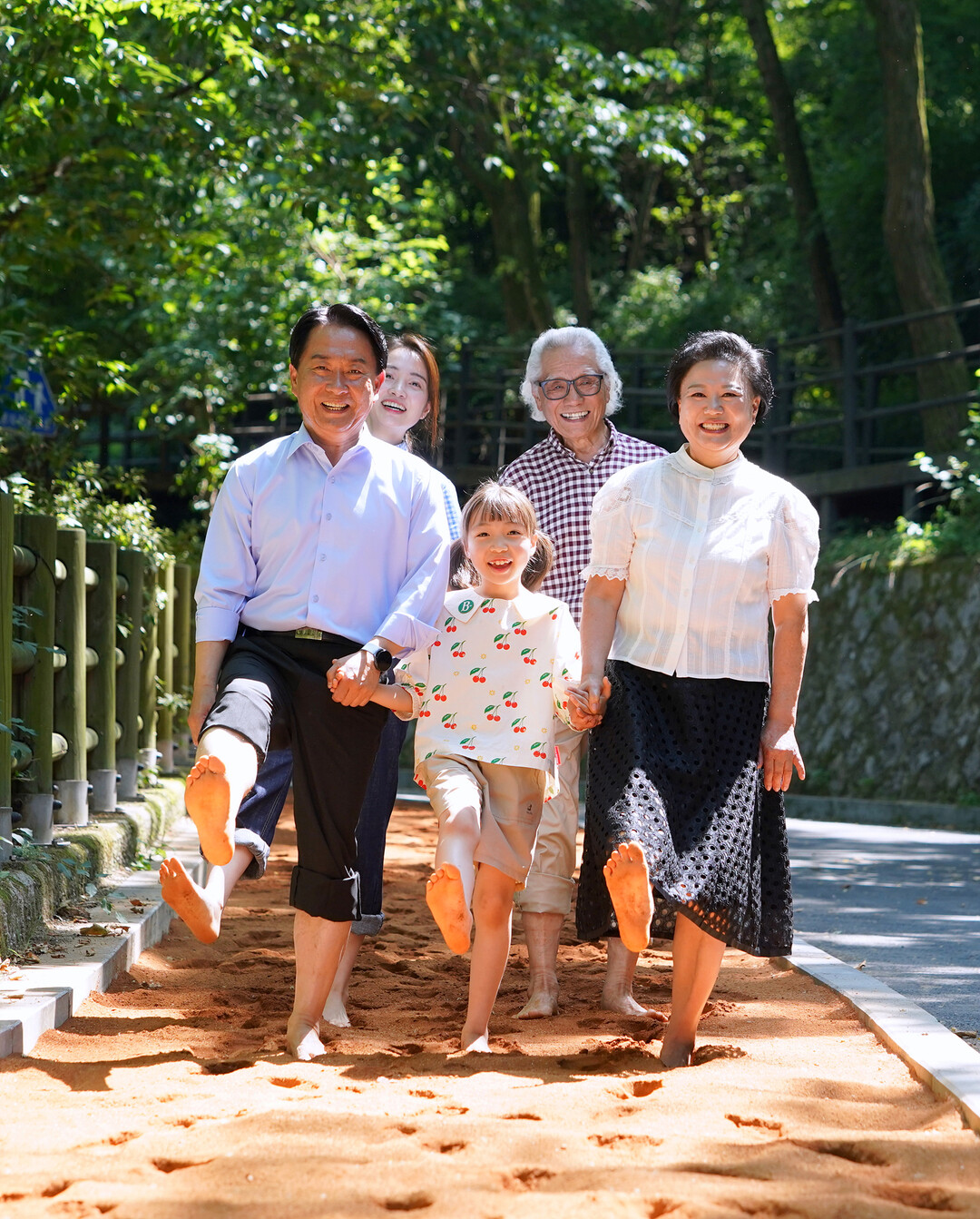 | ▲ 이성헌 서대문구청장(왼쪽)이 구민들과 천연동 황톳길을 걷고 있다. 사진=서대문구 |
