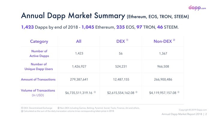 최근 디앱 정보사이트 디앱닷컴(Dapp.com)이 발표한 '2018년 디앱 마켓 리포트(2018 dapp market report)'에 따르면 지난해 디앱 사용자는 총 150만 명에 달했다. 이에 디앱닷컴은 "2018년 디앱 움직임(dapp movement)의 첫 해"라고 규정했다.