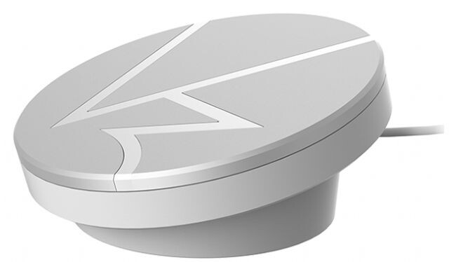 안랩 V3 홈의 외형은 둥근 무선충전 패드를 연상시킨다. 안랩의 PC 및 모바일 안티바이러스 제품 브랜드 V3를 연상시키는 흰색 문자가 회색의 비스듬한 원형 상판에 새겨져 있다.