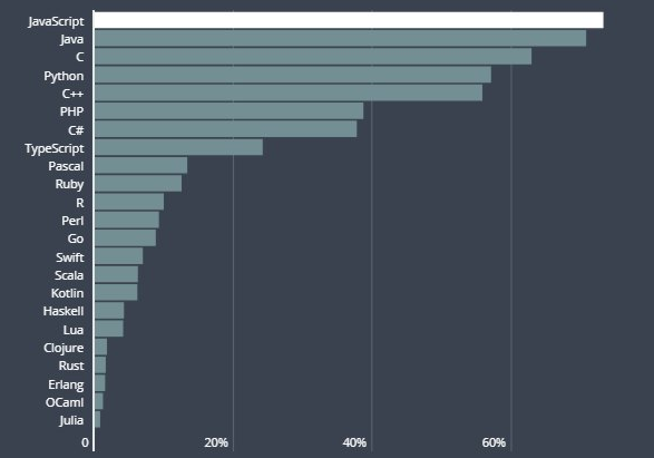 이번 조사 결과 자바스크립트가 '가장 널리 알려진 프로그래밍 언어(most widely-known programming language)' 1위로 선정됐다. 전년도에는 자바가 1위를 차지한 바 있다. 구체적으로 자바스크립트는 2017년도 66%에서 2018년 73%로 인지도가 껑충 뛰었다. 다만 학생 개발자의 경우는 42%에 그쳤다. 이는 대부분의 대학 컴퓨터 과학 프로그램에서 자바스크립트t를 가르치지 않기 때문으로 풀이됐다.