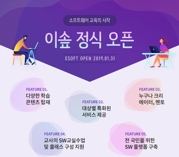 EBS는 SW(소프트웨어)교육에 관심 있는 누구나 무료로 학습할 수 있는 SW 교육 온라인 플랫폼 ‘이솦(ESOF, EBS Software Learning Platform)’을 정식 오픈했다고 31일 밝혔다.