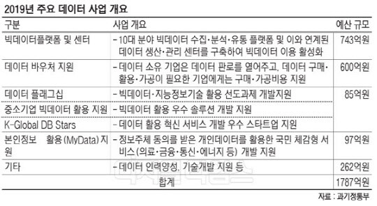 정부가 올해 지난해보다 4배 이상 증액된 총 1787억원의 예산을 데이터 생산·유통·활용 단계에 투입한다. 4차산업혁명 시대에 빅데이터 활용의 중요성은 날로 커지고 있지만, 개인정보보호는 여전히 숙제인 가운데 과학기술정보통신부가 데이터 기반 혁신성장에 박차를 가한다.