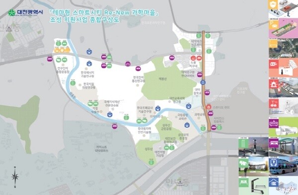 대전은 노후화된 대덕연구개발특구 일대를 중심으로 스마트 서비스를 제공하는 '리뉴(Re-New) 과학마을' 조성을 추진한다. 또한 무선 전기버스를 도입하고 정류장에 냉난방 쉼터를 설치해 대중교통 편의를 개선한다. 연구기관에는 6곳의 기술체험관을 조성하고 탄동천 주변으로는 범죄예방 기능의 스마트 가로등도 설치할 예정이다.