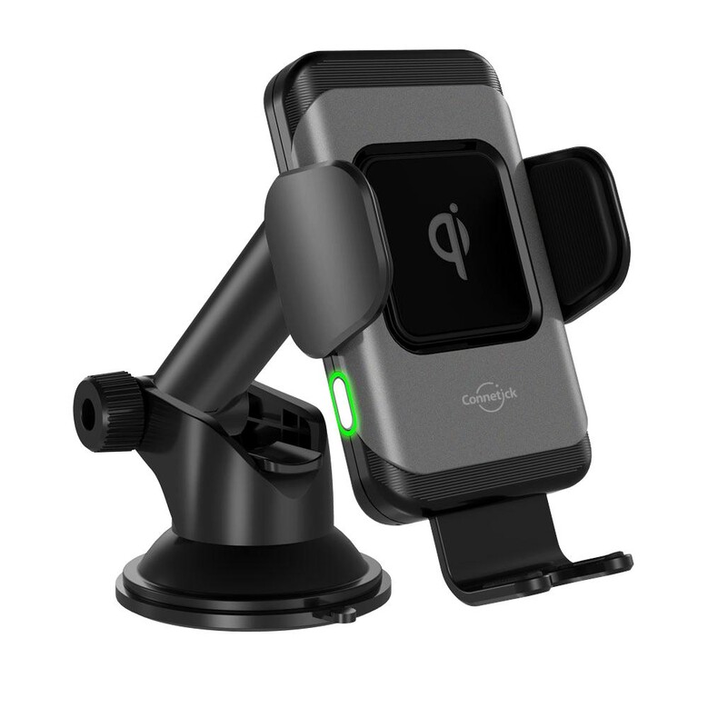 커네틱(Connetick) 차량용 고속 무선 충전 거치대는 사용자 편의성을 높이기 위해 좌, 우 양쪽에 듀얼 LED 터치 버튼을 탑재하여 차량 내 어느 위치에서도 편하게 사용이 가능하며, 저소음 스페터 모터를 채택하여 부드럽고 안정적으로 스마트폰을 잡아 단단하게 고정한다.