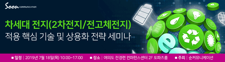 순커뮤니케이션은 7월18일에 여의도 전경련컨퍼런스에서 ‘차세대배터리(2차전지/전고체전지)적용 핵심 기술 및 상용화 전략 세미나’를 개최한다.