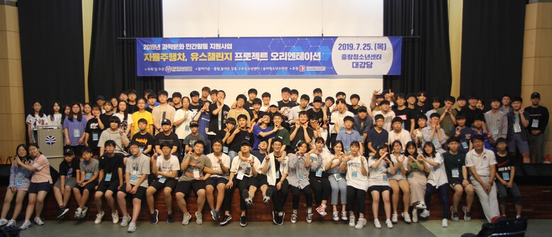 한국청소년연맹이 주최, 주관하는 미래 상상! 경험! 도전! 자율주행차, 유스챌린지 프로젝트 오리엔테이션이 25일 중랑청소년센터 대강당에서 청소년 30개 참가팀 120명이 참석한 가운데 개최됐다.