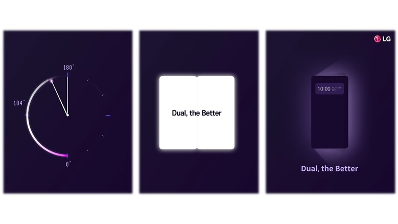 약 15초 분량의 이 영상은 시계 화면으로 시작된다. 시계에는 기존 LG 듀얼 스크린과 스마트폰의 고정각도를 암시하는 0°, 104°, 180°가 적혀있다. LG전자가 올해 초 선보인 LG 듀얼 스크린은 0°, 104°, 180°의 각도로 고정해 사용 가능하다.