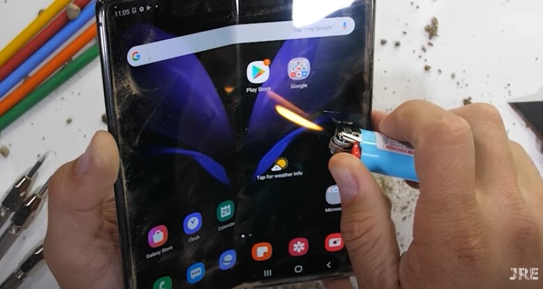 이 과정에서는 라이터를 켜고, 내부 디스플레이에 불을 가까이 두었다. 불에 노출되고 15초 뒤, 내부 디스플레이에 일시적으로 이상이 발생했다. 그러나 디스플레이를 접고 다시 펼쳤을 때에는 제품이 정상적으로 작동했다.
