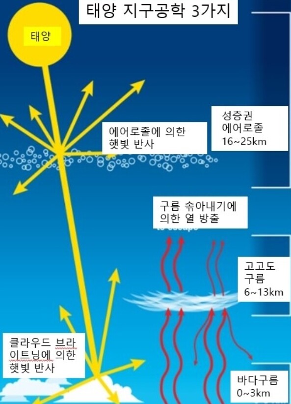 미국국립과학공학의학아카데미(NASEM)가 발표한 `햇빛 반사' 보고서에 따르면 세 가지 지구공학 아이디어가 가장 많이 거론된다.