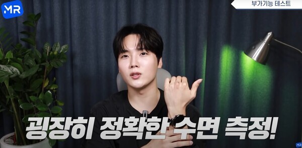 엠알은 그 다음 순서로 부가기능을 테스트했다. 먼저 심박수와 산소포화도를 애플워치와 동시에 측정해보면 두 제품 간 오차범위가 크지 않아 믿을만한 결과가 나왔다. 수면 측정의 경우 애플워치(유료앱x)보다 조금 더 디테일하고 정확한 데이터(수면의 질, 총 수면시간 등)를 제공한다. 반면 운동 측정 기능은 실제 운동량보다 더 많이 운동한 것으로 기록되기 때문에 참고용으로만 사용하라고 조언했다.