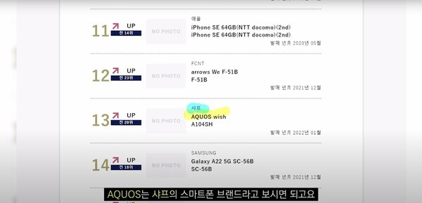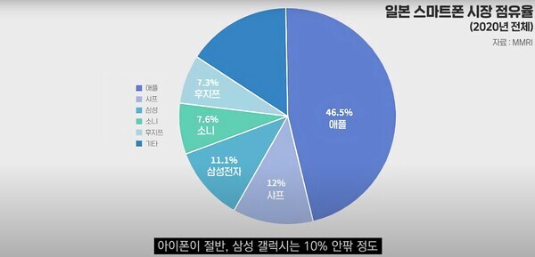 리뷰에 앞서 뻘짓은 "일본의 주간 스마트폰 판매 랭킹을 보면 1위부터 11위까지가 전부 아이폰이다. 2020년 시장 점유율을 봐도 아이폰이 절반을 차지하고, 그 나머지를 삼성 갤럭시(11.1%)와 샤프(12%), 소니(7.6%), 후지쯔(7.3%) 등 일본 토종기업들이 나눠먹고 있다"고 일본의 스마트폰 시장을 설명했다.