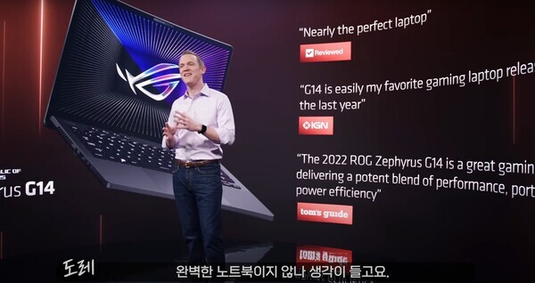 AMD는 RDNA2가 내장그래픽으로 탑재된 라이젠 6000번대 노트북과 ROG 제피러스 G14에 대해 소개했다. 라데온+라이젠 6000번대를 조합했기 때문에 휴대 가능해진 완벽한 노트북이란 설명이다.