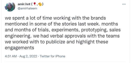 2일(현지시간) 헬륨 공동창업자 아미르 할림(Amir Haleem)은 트위터를 통해 "최근 헬륨은 파일럿 프로젝트, 테스트 등 몇몇 업체들과 협업을 진행했다. 또 우리는 파트너 관계를 홍보하고 강조하기 위해 파트너사들로부터 구두로 승인을 받았다"고 말했다.
