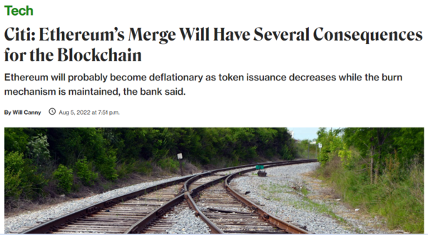이더리움(ETH) 머지(PoS 전환)가 완료되면 ETH 발행량이 연 4.2% 감소해 디플레이션 자산이(발행량보다 소각량이 많은) 될 수 있다는 분석이 나왔다.
