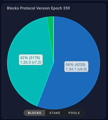 26일(현지시간) 카르다노 개발사 IOHK가 공식 트위터를 통해 "1.35.3 버전 노드 업그레이드(바실 하드포크 지원 최종 버전)를 마친 스테이크 풀 운영자(SPO)가 블록의 42%를 점유하고 있다"고 밝혔다.